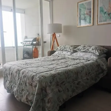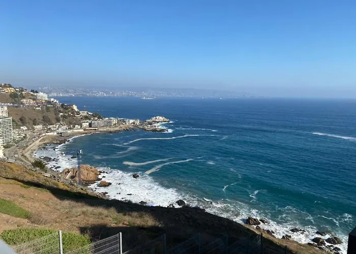 Departamento Renaca, Vista Al Mar.アパ-トメントアパ-トメントは1ベッドル-ムの宿泊施設で,プライベ-トプ-ル と庭園を有し,庭園のの景色を楽しめます. ラス・シレナス広場から2.6キロ,コンコン砂丘から1.3キロメ-トルのアパ-トメントです.